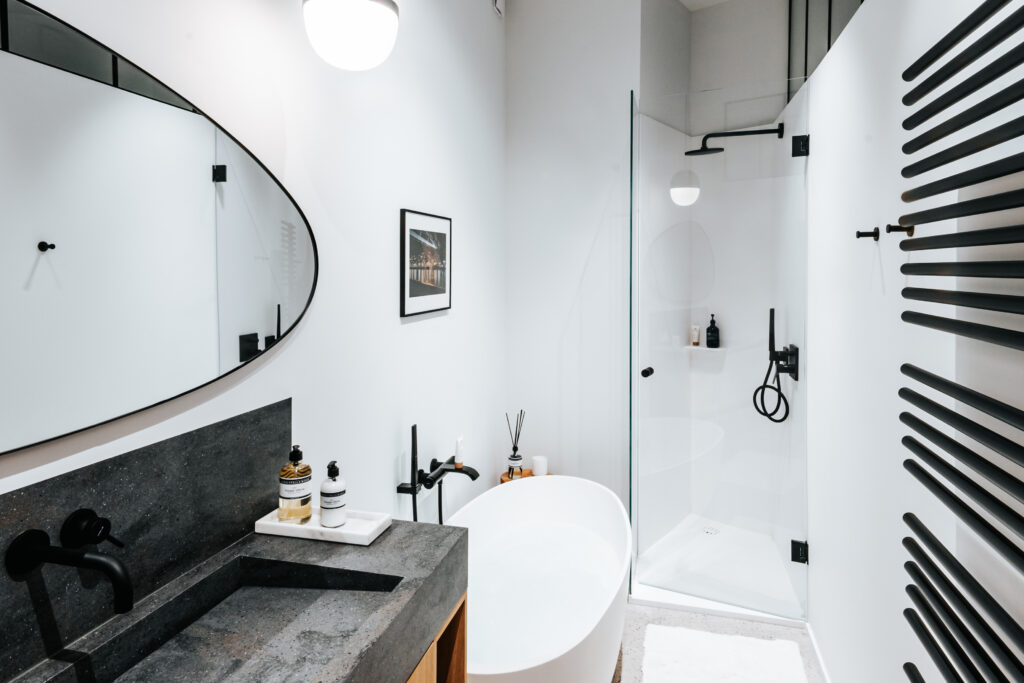 Vous profiterez également d’une agréable salle d’eau, composée d’une baignoire et d’une douche.
